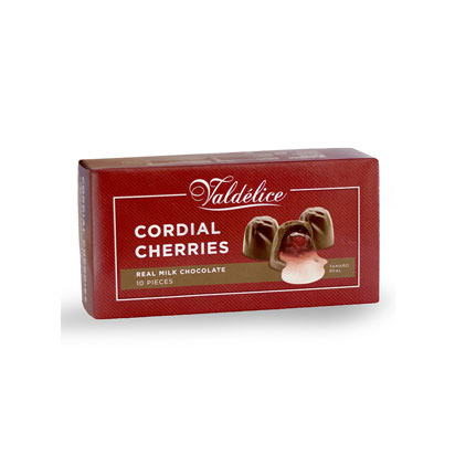 Bombones cerezas cubiertas de chocolate Valdelice 95 gr caja de 24 unidades.