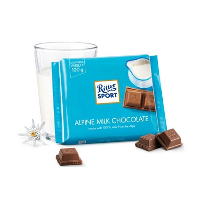 Barra de Chocolate con Leche Extra Fino esto es chocolate a un alto nivel. Un proceso especial de conchado confiere a la mezcla de leche alpina y cacao su característico aroma a caramelo y miel.