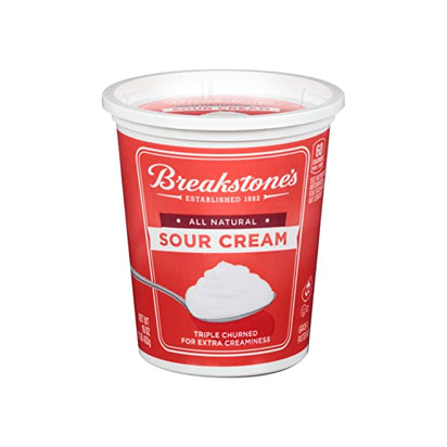 All Natural Sour Cream de Breakstone ofrece el sabor clásico y la textura cremosa que conoces y amas. Esta deliciosa crema agria totalmente natural, elaborada con leche y crema cultivadas pasteurizadas de grado A y batida tres veces para obtener una cremosidad adicional, es siempre una excelente adición a las comidas y guarniciones. Disfrute de la crema agria batida triple sobre papas al horno o como aderezo cremoso para sándwich. Agregue una cucharada a la sopa de tomate o la pizza de tacos, o prepare una deliciosa salsa de cebolla francesa para verduras o papas fritas. También puede usarlo para hacer un bizcocho de crema agria decadente o una salsa cremosa de pollo búfalo. La conveniente tina resellable de 16 onzas se guarda perfectamente en su refrigerador y mantiene esta crema agria lista para cuando se le presente el antojo. La crema agria de Breakstone es siempre cremosa y deliciosamente satisfactoria porque Breakstone’s se ha elaborado con calidad y cuidado.
