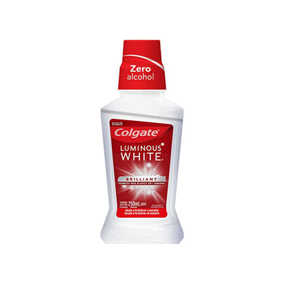 Sorprende a todos con la sonrisa espectacular que el Enjuague Bucal Colgate Luminous White te proporciona, al mismo tiempo evita el dolor por lesiones en la mucosa o sequedad que se puede presentar en los tejidos orales. Consigue un aliento fresco para que puedas recuperar la confianza que habías perdido al hablar, reír o besar.