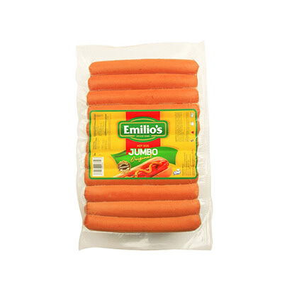 Salchicha Emilios Jumbo Hot Dog Original, Salchicha cocida, lista para consumir.