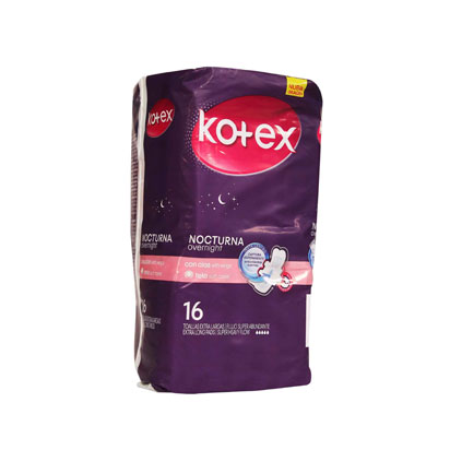 Toallas Sanitarias Kotex Nocturna C/Alas 16 Uds.